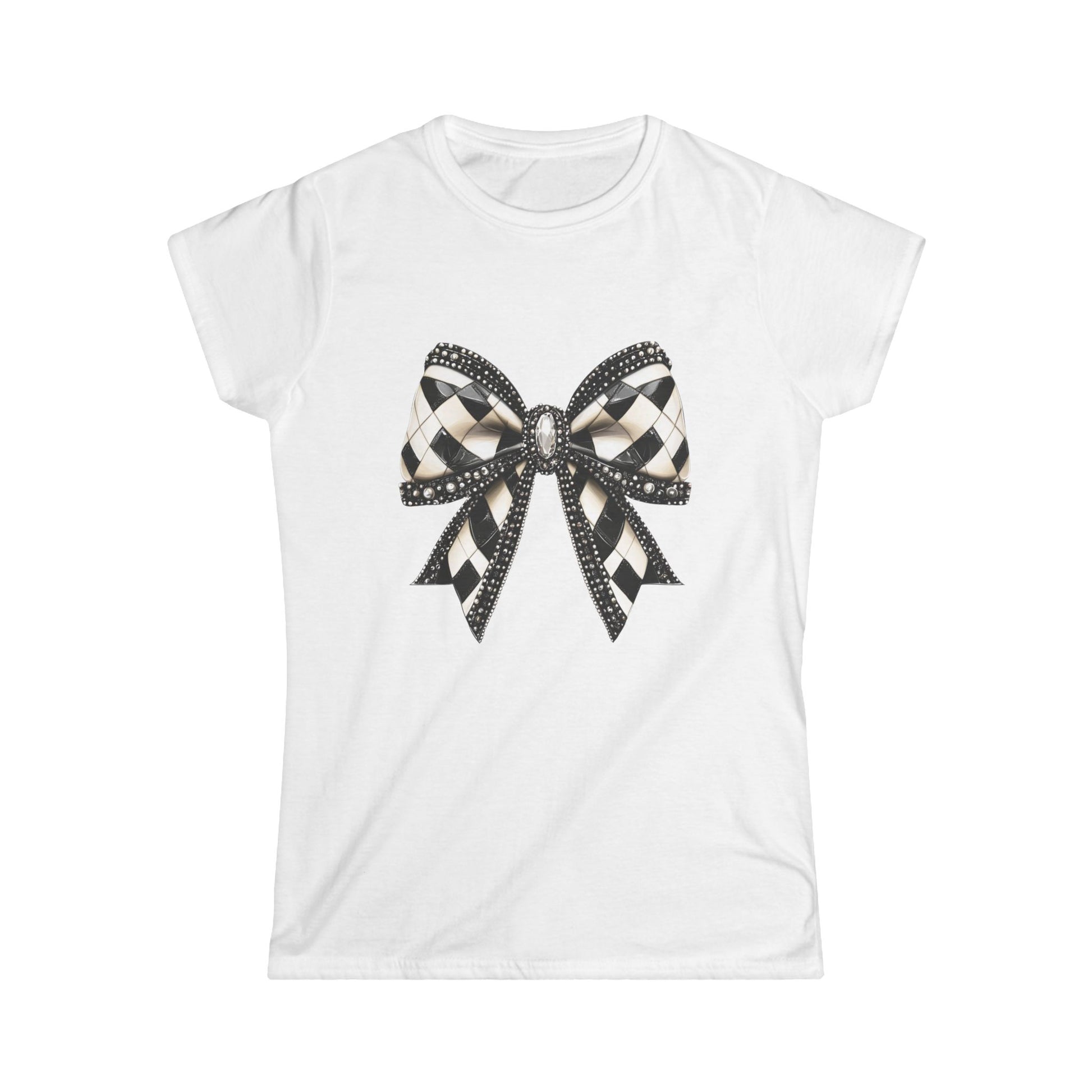 Bow Graphic Tee — Black & White Plaid Ribbon Women's T-Shirt
