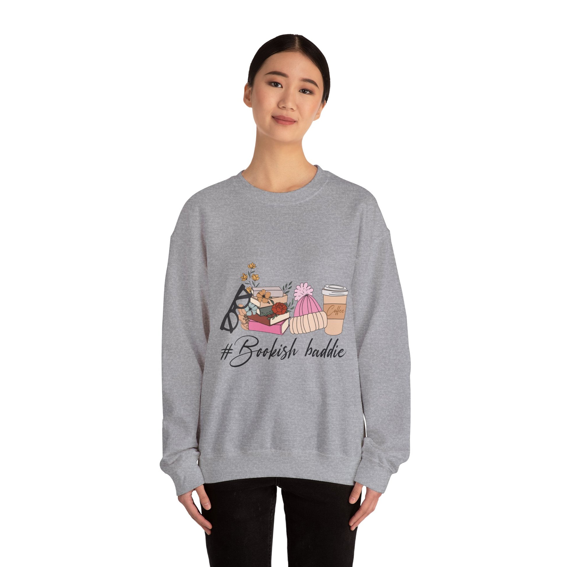 Crewneck Sweatshirt — "#Bookish Baddie" Cozy Reader Graphic Pullover