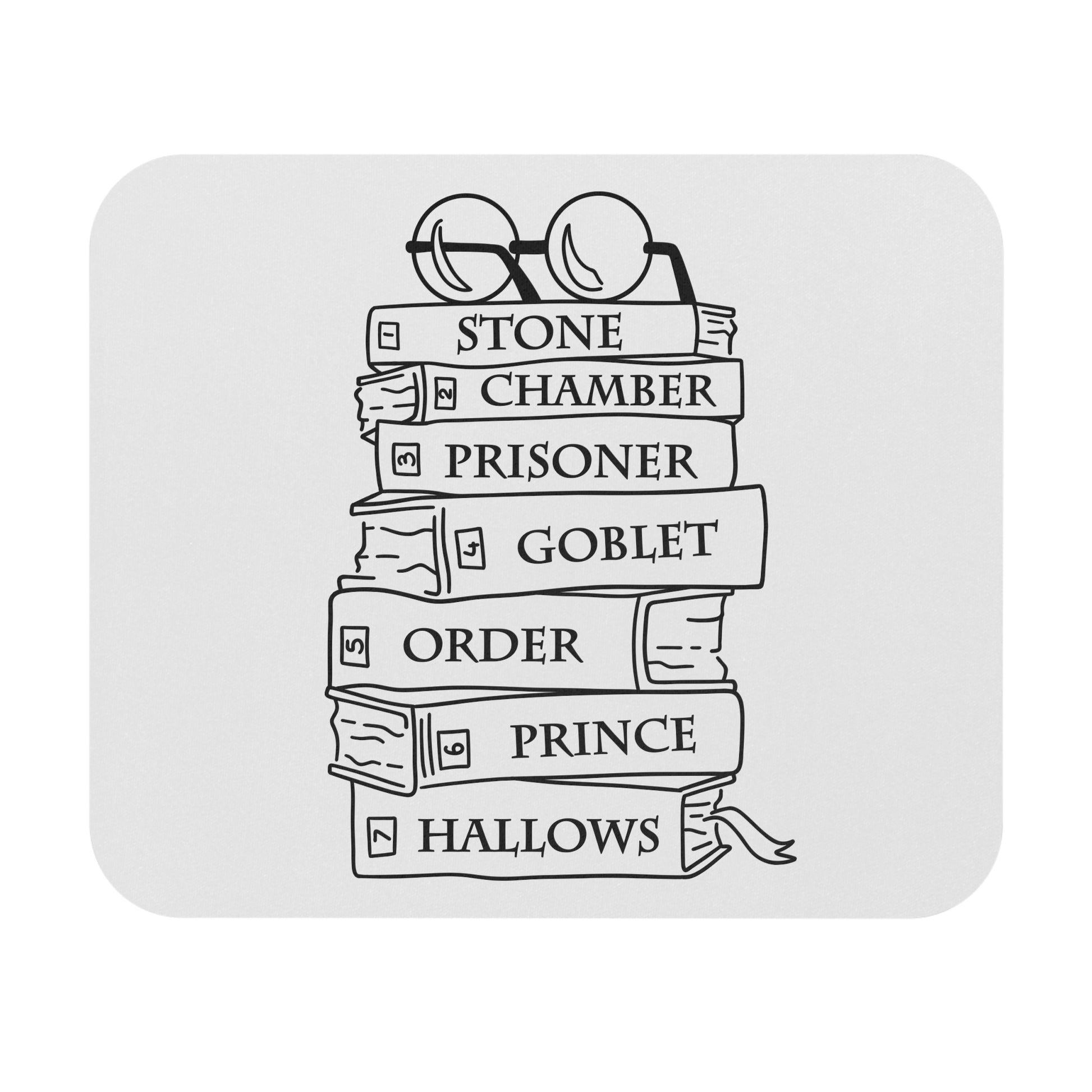A slender rectangular mouse pad that brings bookish charm to your desk. A neat stack of classic-style books is hand-drawn across the smooth white surface, topped by a pair of round spectacles — a quiet nod to late-night reading sessions and cozy study marathons. The low-profile foam keeps your wrist comfortable while the non-slip rubber base steadies every precise movement. Colors stay crisp thanks to full-front decoration, and the single-sided print keeps the design clean and focused. It slips easily into a laptop bag or sits under your keyboard, turning an ordinary workspace into a personal nook that feels thoughtfully curated.
