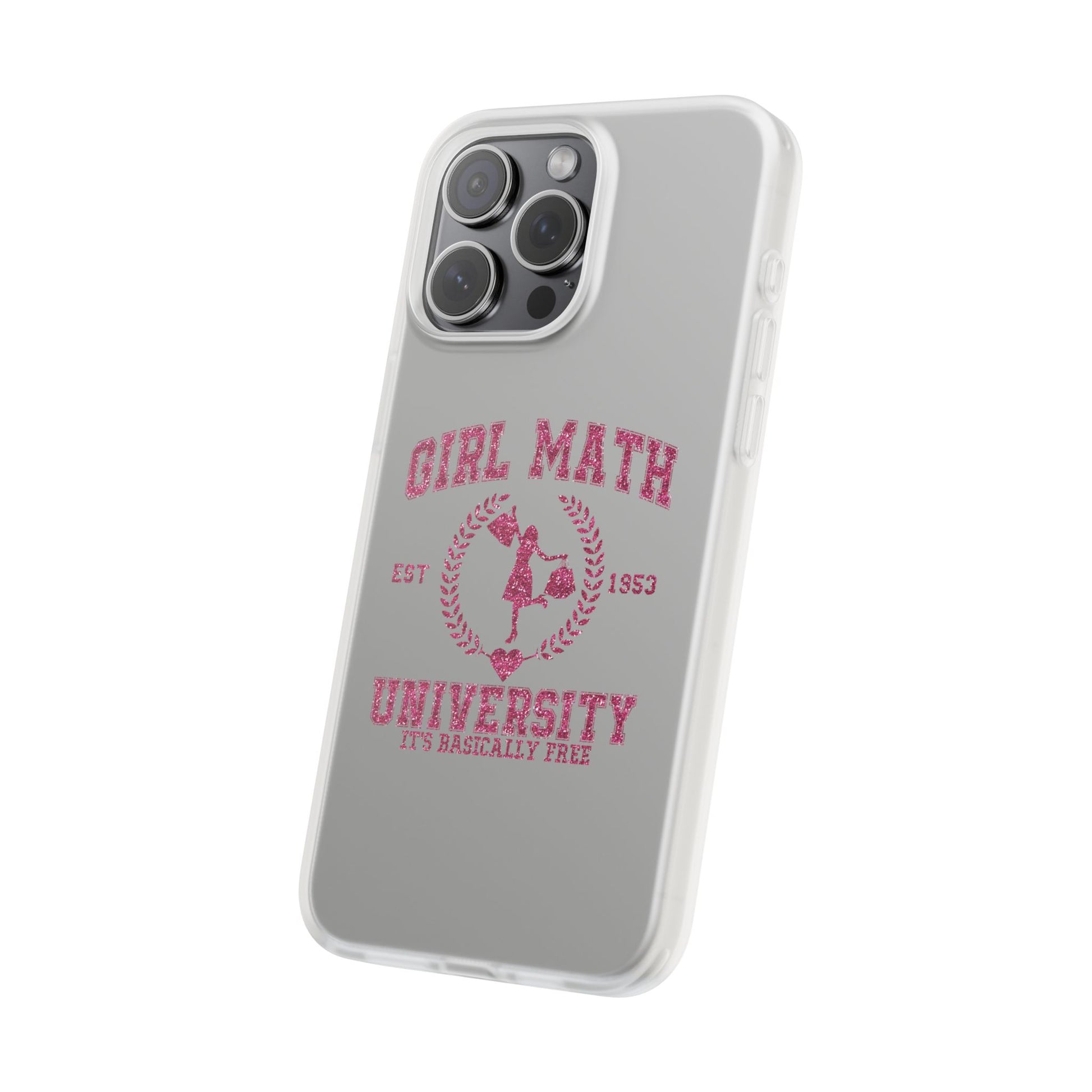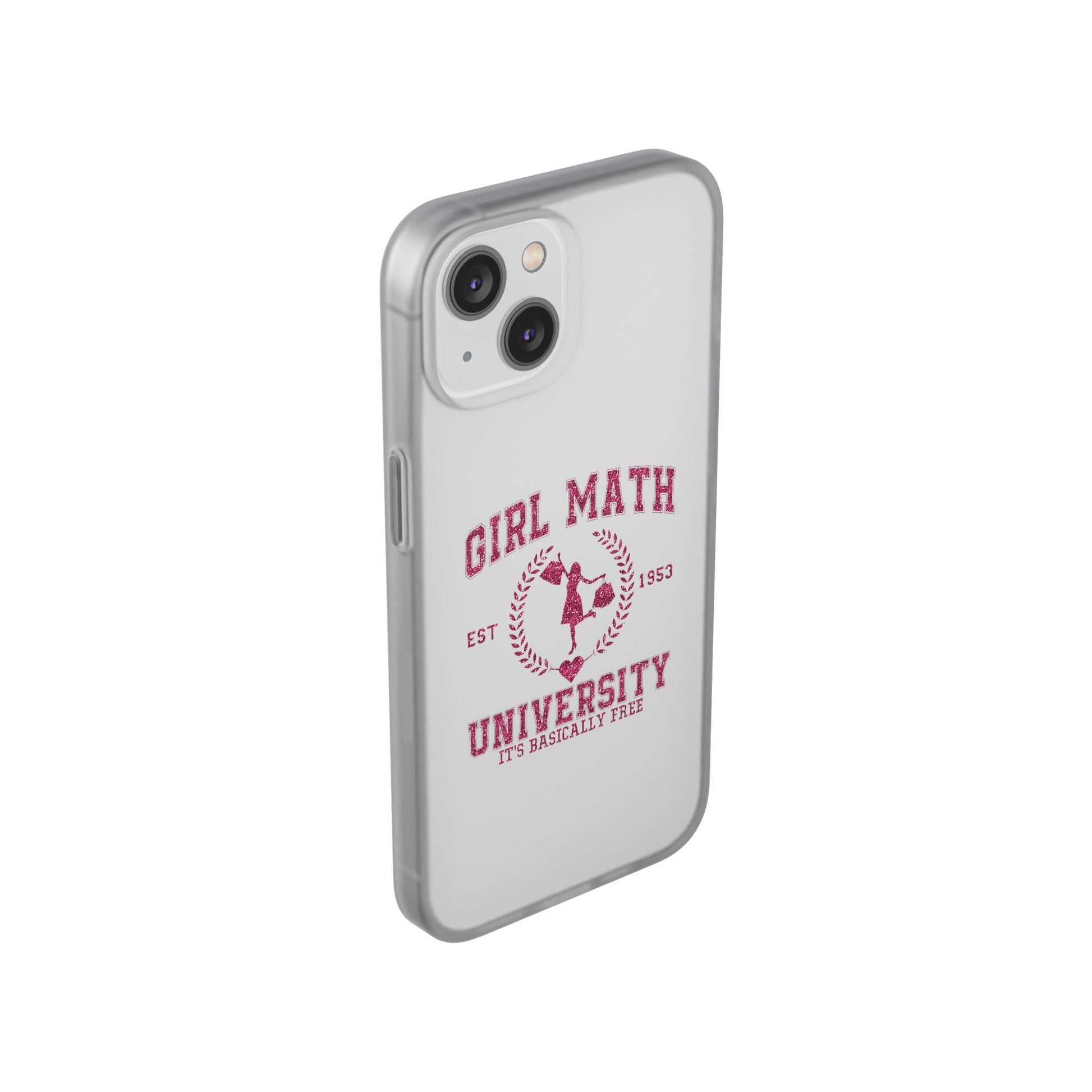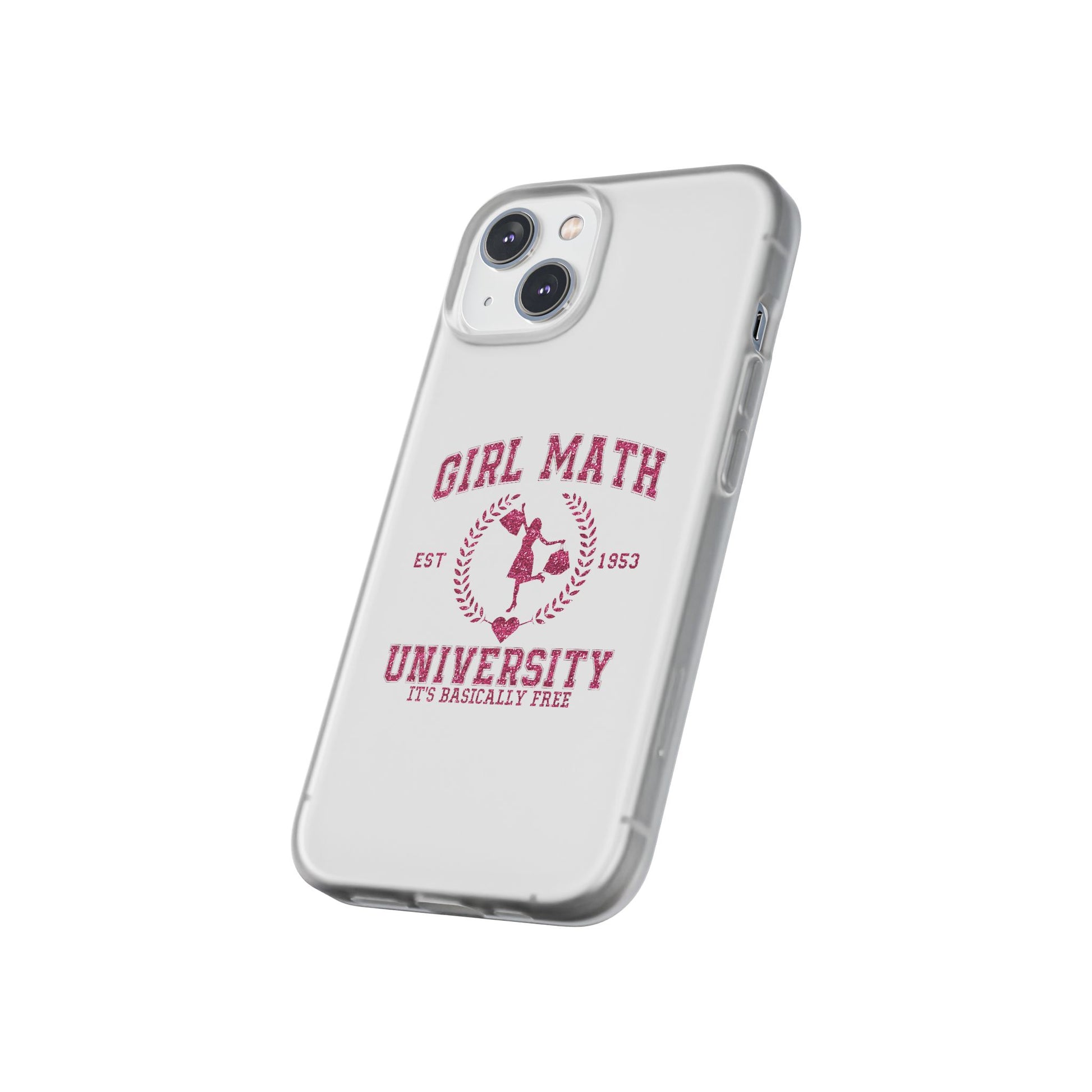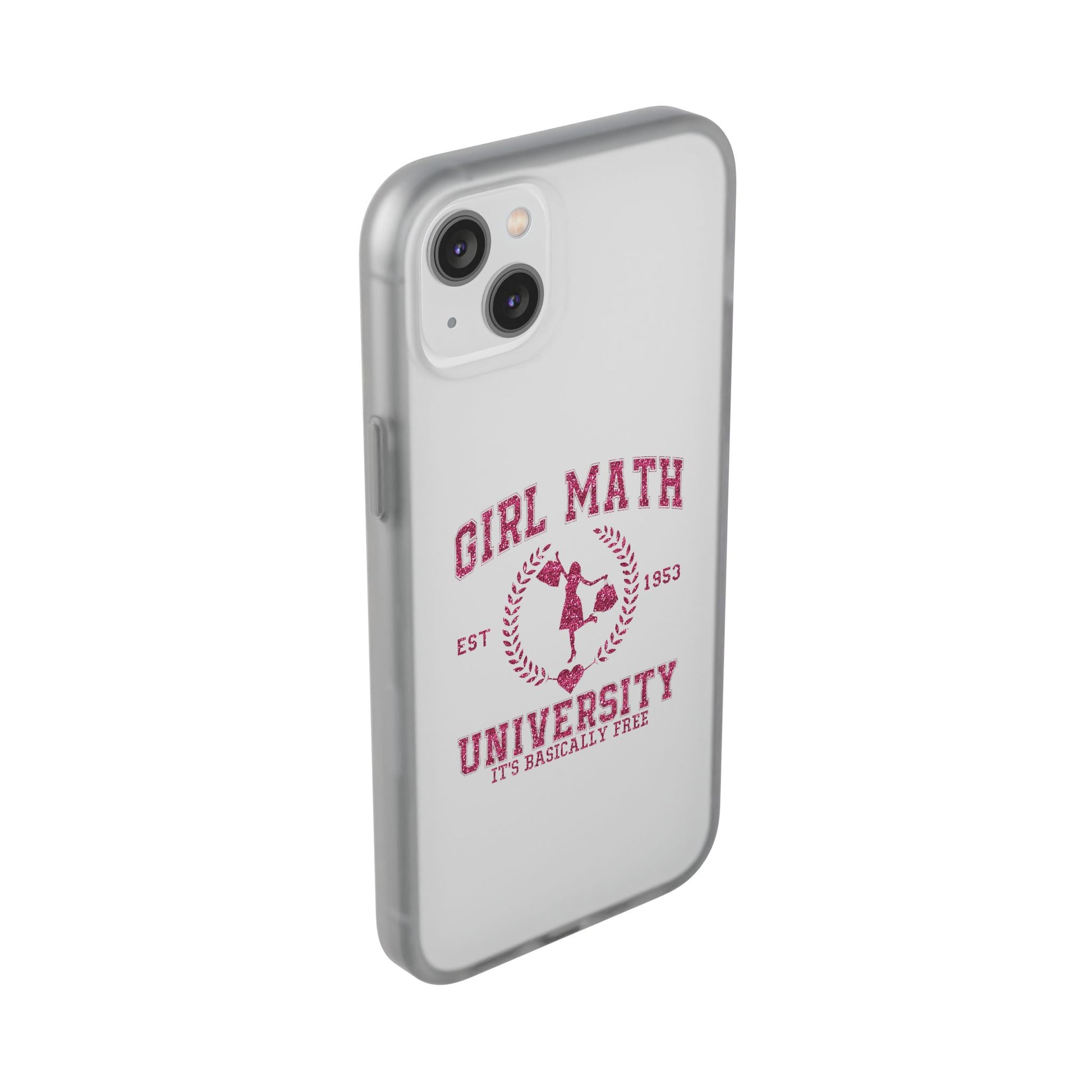 This slim, semi-transparent phone case brings personality to your everyday carry without adding bulk. The frosted TPU finish feels smooth in hand and bends with confidence — tough enough to absorb drops, yet thin enough to slide into pockets. A vintage collegiate design with playful "Girl Math University" artwork shows crisp, vibrant printing that stays true to the original illustration. Precise cutouts keep buttons, ports, and cameras accessible, and wireless charging works with the case on. Lightweight and flexible, it fits snugly around your phone for low-profile protection that still looks like you.