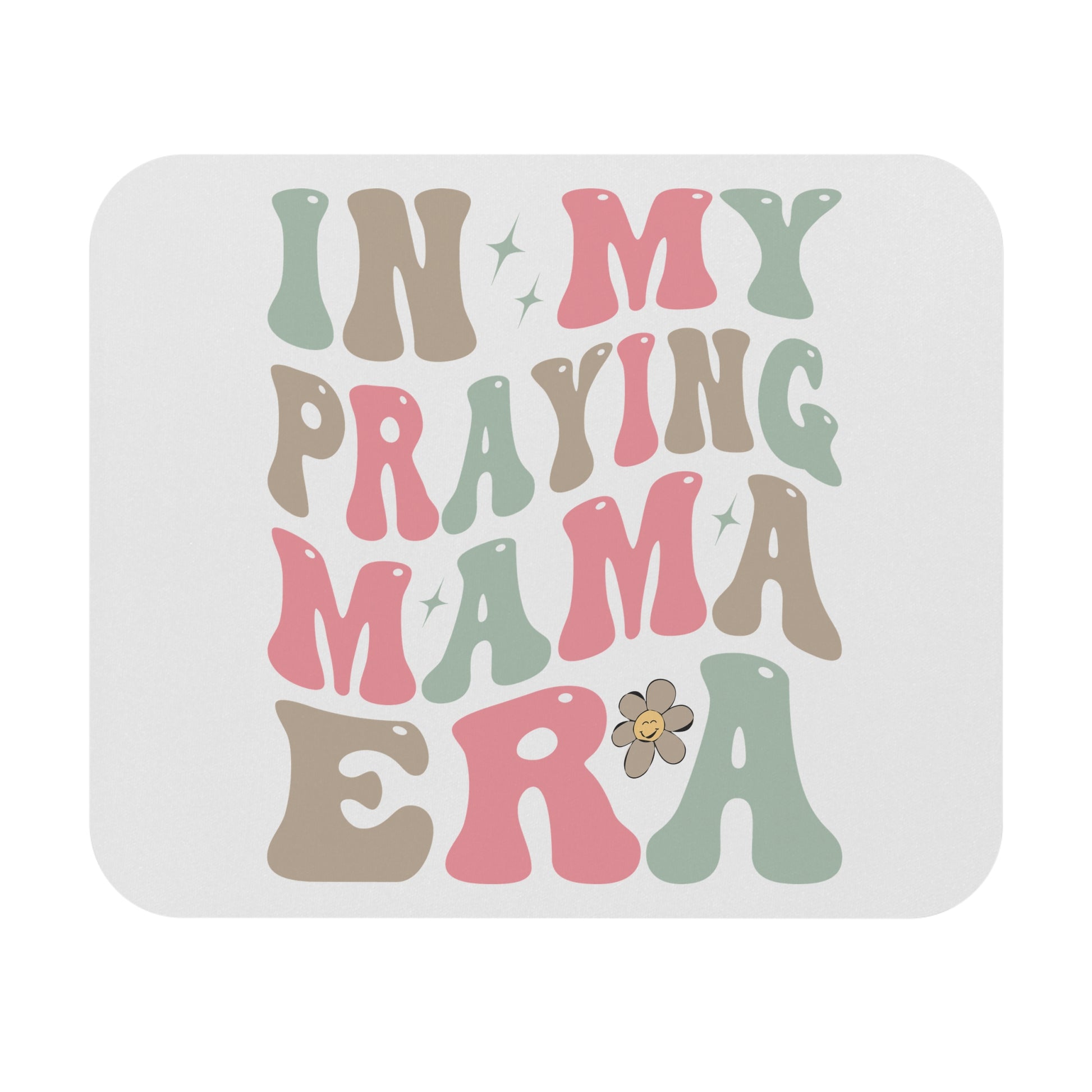 Add a gentle, uplifting touch to your desk with this rectangular mouse pad. Soft, rounded typography in muted pinks, greens, and warm tans reads “IN MY PRAYING MAMA ERA,” accented by a tiny daisy—friendly and calming against a clean white background. The smooth surface lets your mouse glide effortlessly while colors stay bright and true. A thin, grippy rubber base keeps the pad steady through long work or study sessions. Thin and unobtrusive, it settles neatly under your mouse without taking over the workspace, bringing a little warmth and quiet joy to everyday tasks.